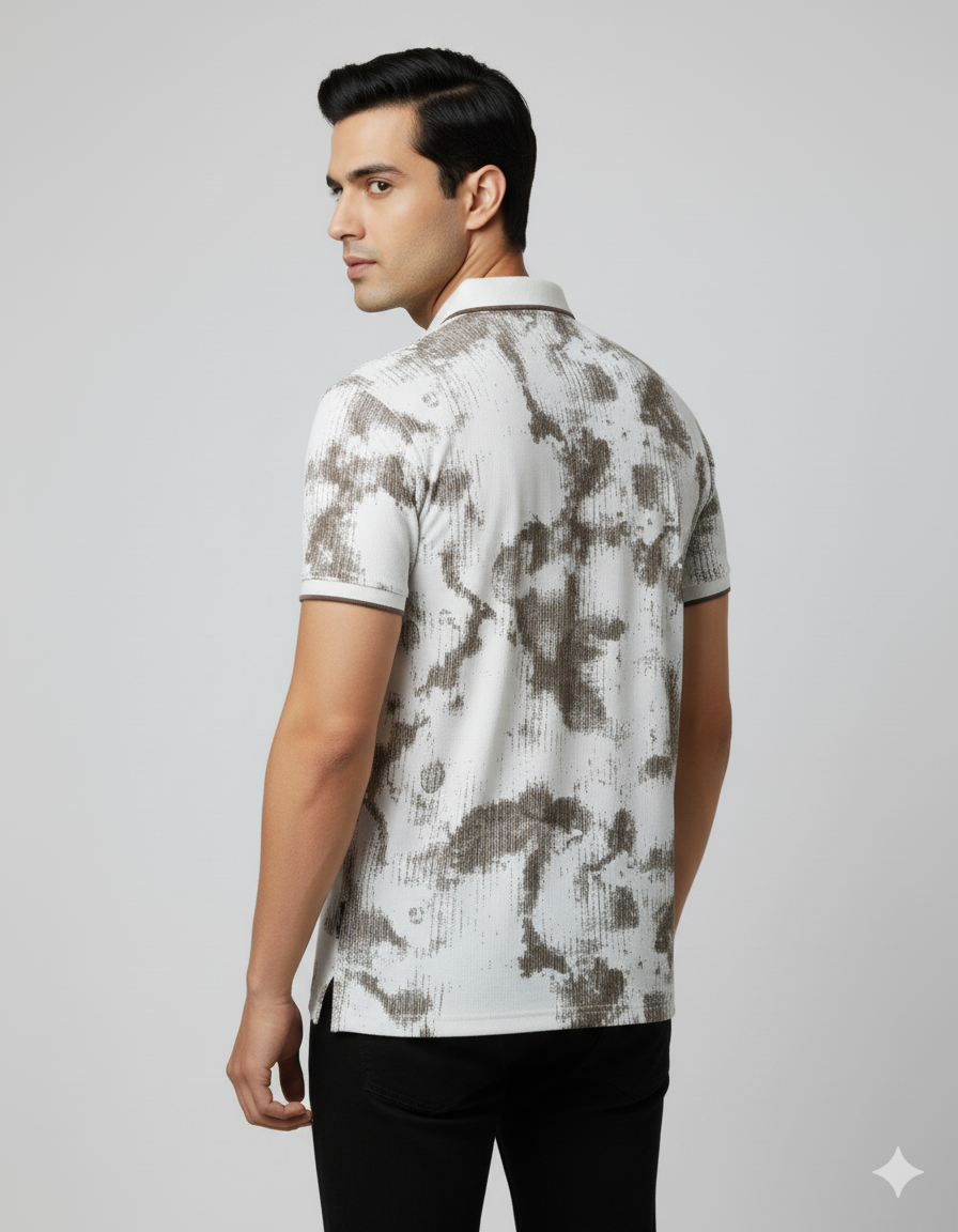 For a modern twist on the classic polo, the Abstract Print Polo Fashion T-shirt blends comfort with creativity. Made from premium cotton, it features an all-over abstract print that adds artistic energy to your smart-casual outfits.