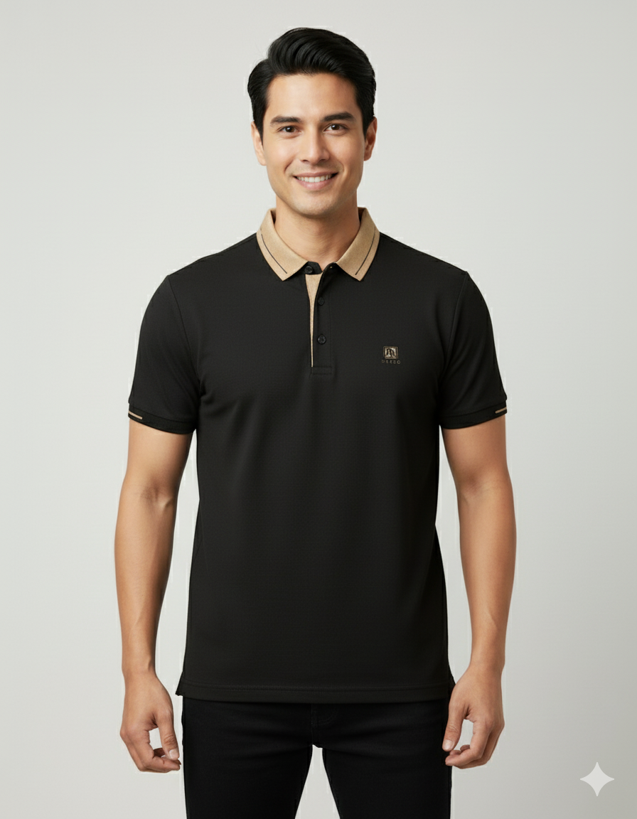 Add a touch of sophistication with the Golden Collar Polo Fashion T-shirt. Crafted from high-quality cotton, it features a soft feel with a polished finish. The contrast golden collar gives it a refined yet modern edge—ideal for casual Fridays or smart-casual outings.