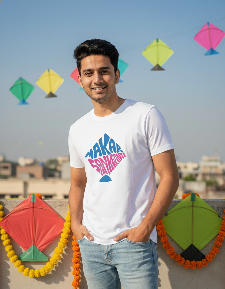 Celebrate tradition, joy, and togetherness with the Makar Sankranti T-shirt. Featuring a festive design inspired by Indian kite culture, this tee is perfect for celebrating the season in comfort and style.