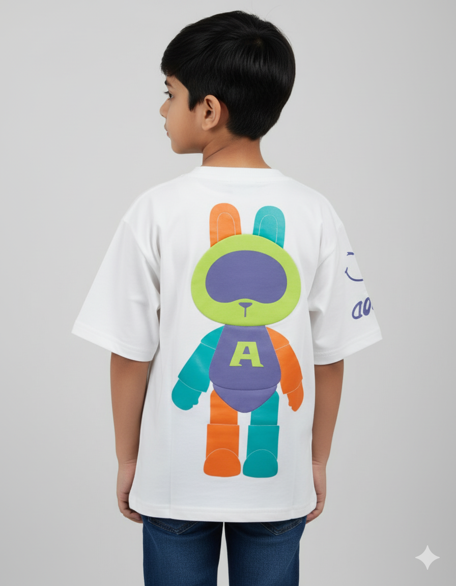 Blending cute and cool, the Robo Teddy Kid’s Oversized T-shirt is perfect for kids who love unique designs. Made from 240gsm 100% cotton, it’s durable yet soft, with a relaxed oversized fit for all-day comfort. The playful robo-teddy graphic adds a fun twist to everyday style.