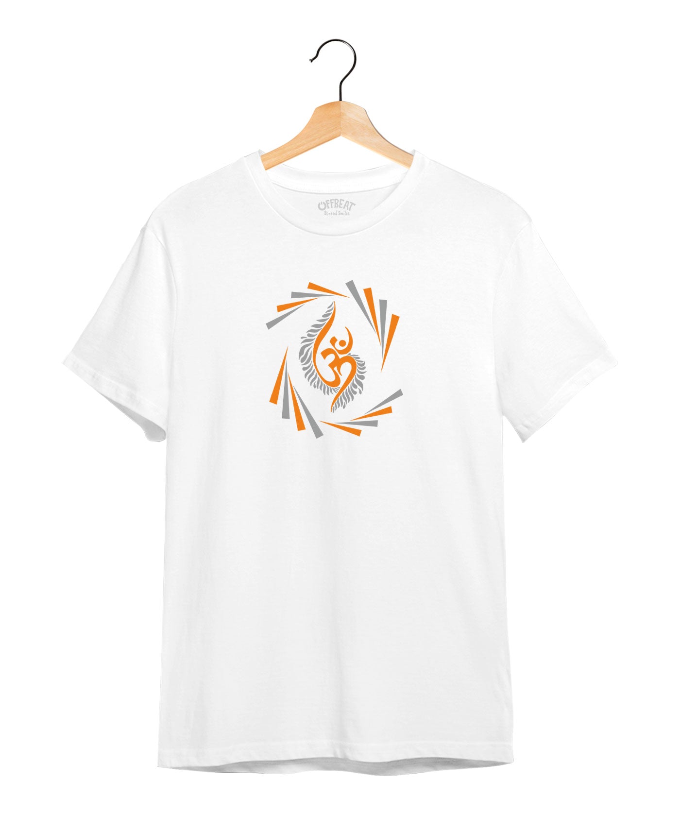 A symbol of purity and fire, the Saffron Om tee on a clean white base is both striking and sacred.
